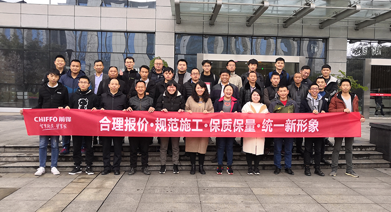 為期兩天的培訓會本著提高“前鋒”品牌店面裝飾裝修工程水平,全民提升施工時效,呈現工程質量,以及“合理報價,規范施工,保質保量,統一新形象”的主題為參會的二十家公司人員展開統一培訓。